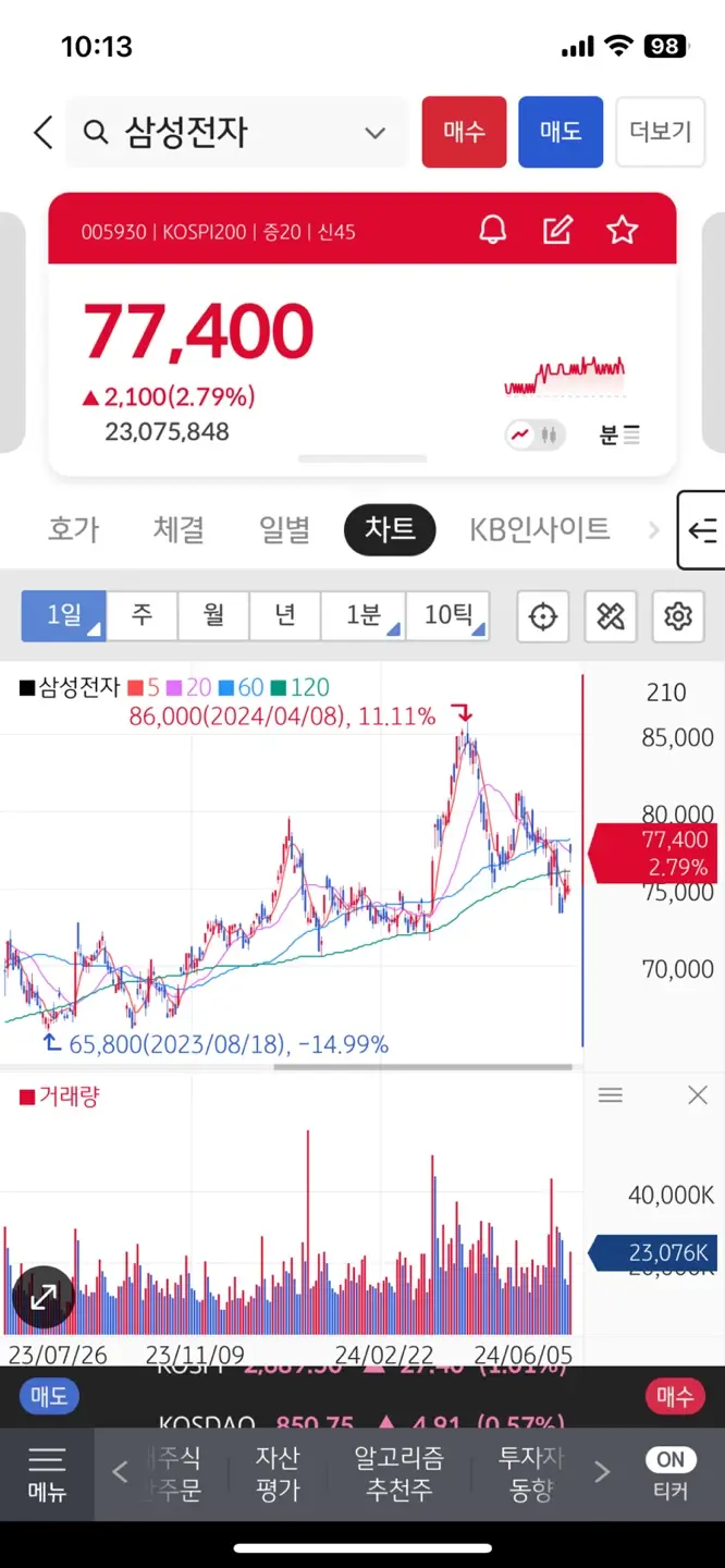 만약 여러 종목을 가지고 있을 때 이 기능은 강력합니다. 실제 '피레침'(갑자기 올랐다 내려가는 경우)이 발생하기 때문에 알람이 중요합니다. 다른 증권 앱들은 알람을 수동으로 설정해야 하는 번거러움이 있죠.